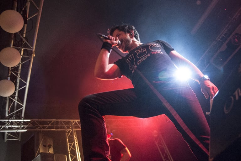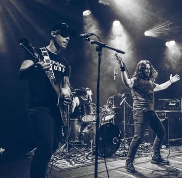 The vocalist has such a powerful voice, he only uses his mic for stage-presence. The notes of our bassist measured magnitude 9 on the Richter Scale on multiple gigs. The two guitarists are both rhythm and lead, switching constantly between repetitive chords and mindblowing catchy leadriffage. And the foundation of this powerhouse is our own unstoppable and untameable drummachine, who hits harder than a tank.